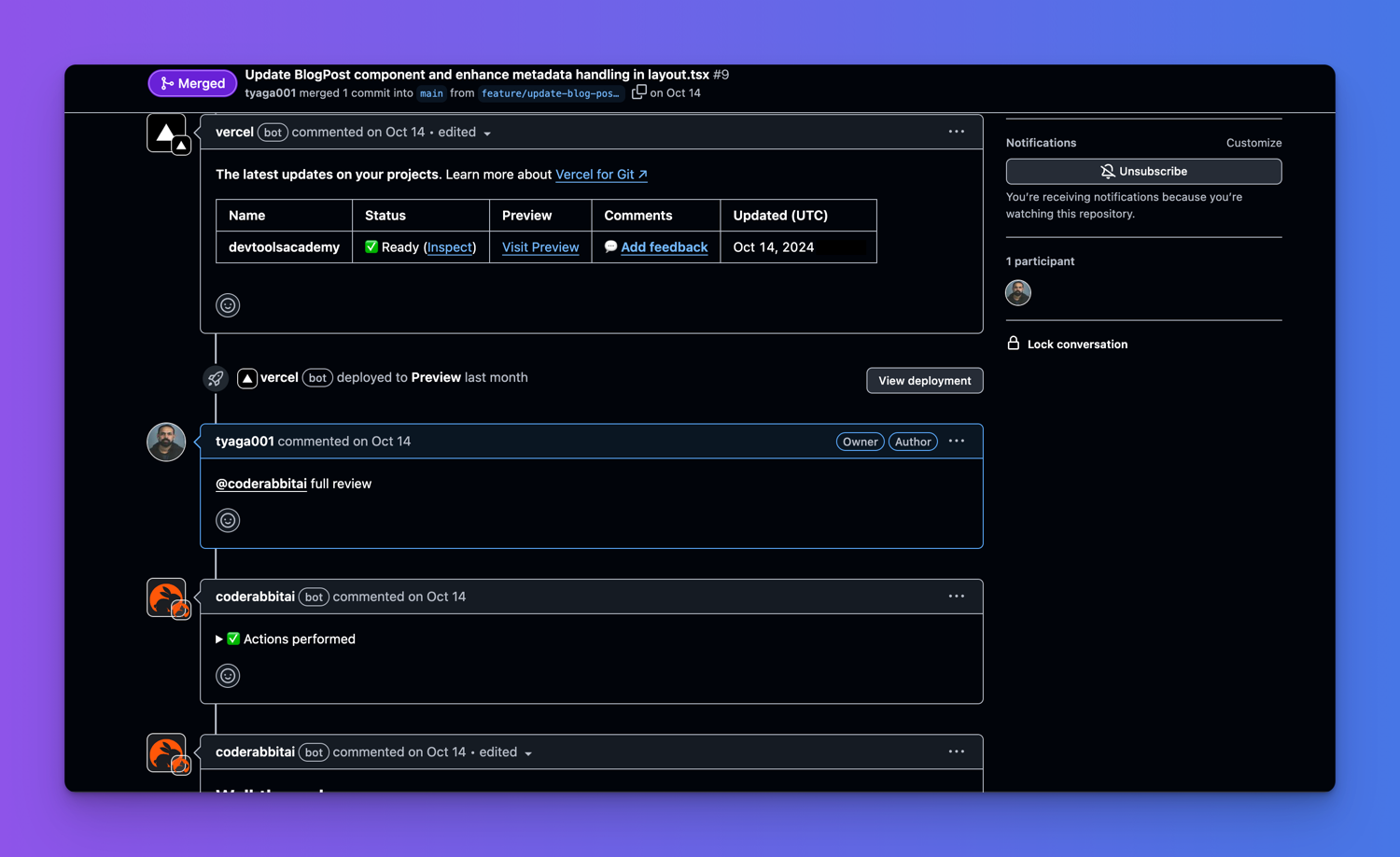 - That's it. CodeRabbit will automatically start reviewing your PRs